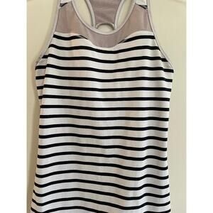 Athleta Hyper Stripe Sports Bra Tank Top Off White & Navy