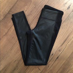 Perfect edgy leggings for gym or running errands. Has a little pocket on inside of waistband. Website: Our version of leather leggings have a high-rise fit for total support and coverage, a faux-leather front with a slight sheen, and a power Pilayo® back with Lycra® spandex to support your every move.