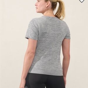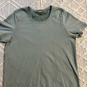 Athleta In Motion Crew in a sea green. Lightweight women’s crew neck tee with perforated fabric for breathability. Soft, stretch material moves with you for comfort during workouts.