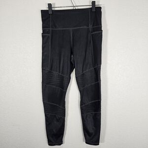 Athleta Inclination Moto Shimmer Tight Womens in Powervita Black Size Medium