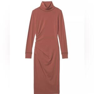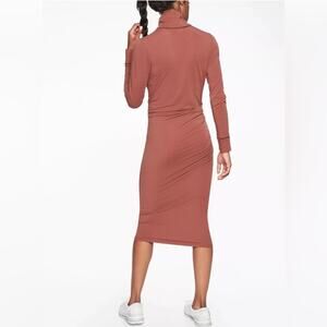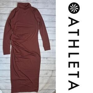 Athleta Industry Turtleneck Dress in Havana Brown Long Sleeve Midi Size Small