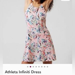 Elegant Athleta dress in a soft pink hue. Has shorts under dress, adjustable straps, can use it to go out or workout!