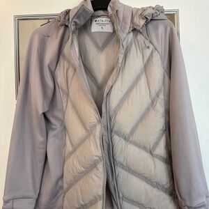 Jacket is a year old. worn a handful of times. No stains. Functional zipper. Detachable hood.
