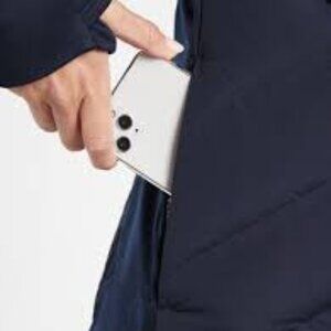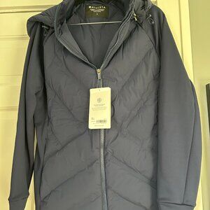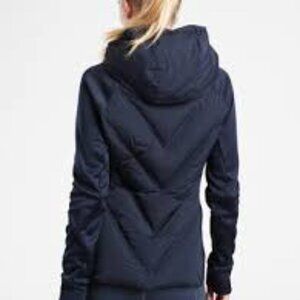 Athleta Inlet Jacket - Navy blue, Large, NWT! Cozy, beautiful navy jacket for active chicas! Hood zips off!