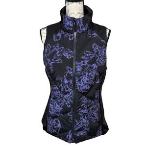 Athleta Inlet Reflective Full Zip Vest Women’s M Black Violet Floral Down Puffer