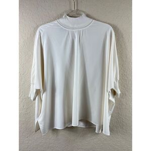Athleta Insights Mock Neck Top Oversized Boxy Sea Salt White XXS Lightweight