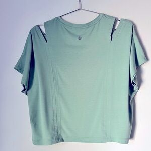 Athleta Intention Tee Split Shoulder Active Stretch Top Sage Green XS Sum 22'