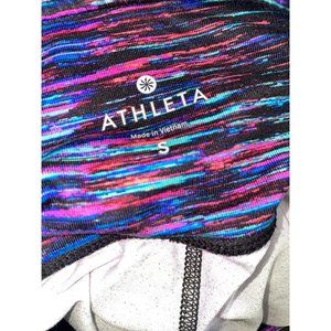 Elevate your athleisure game with these galaxy-inspired leggings from Athleta. Perfect for gym, yoga, training, running, or any other physical activity, these full-length leggings feature a comfortable elastic waist and an easy-care, machine-washable polyester blend fabric. The pull-on closure and compression areas around the waist and leg ensure a snug fit, while the skinny leg style and multicolor striped pattern add a touch of style to your workout wardrobe.