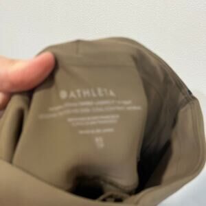 Athleta Interval Stash Tipped Lasercut 7/8 Tight in tan. Premium sculpting leggings featuring side stash pockets, high waist, and lasercut detailing. Sleek, compressive fit perfect for workouts or athleisure looks. Retail $125.