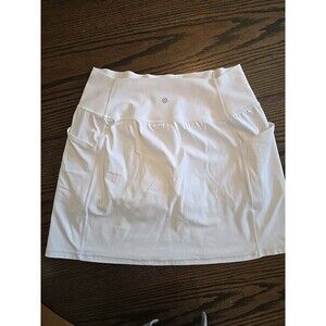 Elegant Athleta skort in ivory. Features a wide waistband and handy side pockets. Ideal for active lifestyles.