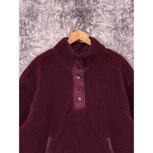 Athleta Jacket 1X Womens Cozy Sherpa Snap Pullover Wine Red Fleece Plus Size