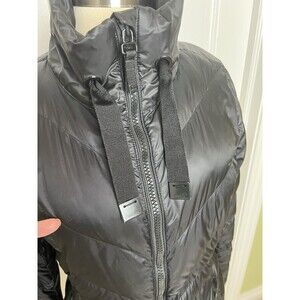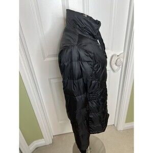 Athleta Jacket Womens M Black Goose Down Puffer Quilted Coat Active Outdoors. Pre-owned condition. Has a tiny line on jacket. See photo. No stains or holes. Light wear on hardware .Pit to pit measures 20 length from center back 29. Clean and comes from a smoke free environment .