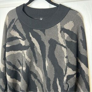 Athleta Jacquard Crew Sweater Women's Medium Merino Wool Gray Black Abstract