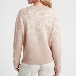 Athleta Jacquard Crew Textured Merino Wool Blend Sweater in Frosted Floral Cream Medium