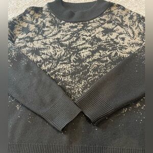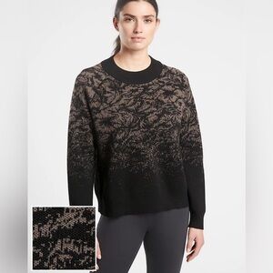 Athleta Jacquard Crew Wool Sweater, Color Frosted Floral Charcoal Gray, Size XS