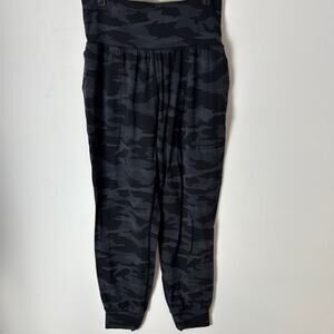 Gently Used Athleta Salutation Joggers. These are a women’s small. Grey / black camo throughout. Side pockets. No care tag, but I'd assume a poly blend.