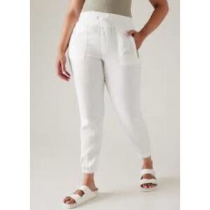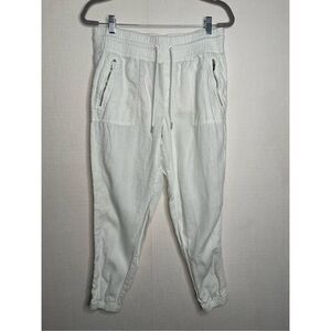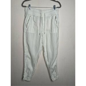 This Athleta Joggers Womens Size 12 White Cabo Linen Pants Zip Pockets
