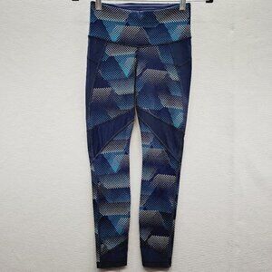 Athleta Kinetic Stealth Mesh 7/8 Tights Blue Mesh Panel Workout Leggings sz XS