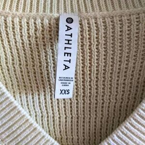 Athleta Knit Pullover Sweater Women's Size XXS Dove White V-Neck Cozy Minimalist Cotton Blend