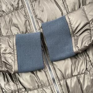 Athleta L Dobby Goose Down Quilted Puffer Bomber Jacket Brown
