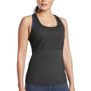 Athleta L Womens Black Vitality Rib Tank Racer Back Gym Running Active