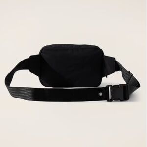 Black belt bag. Front zip pouch and larger one. Water repellent. Wipe clean. Adjustable straps for personalized fit and carry. Convertible strap can be worn around the waist or over the shoulder.