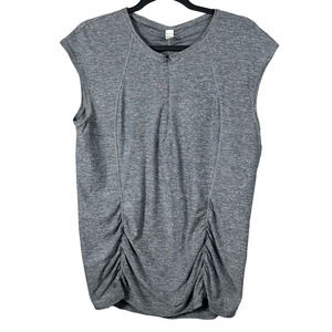 Athleta Large Gray Ruched Cap Sleeve Quarter Zip with Back Pocket