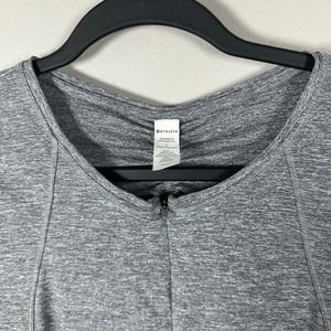 Athleta Large Gray Ruched Cap Sleeve Quarter Zip with Back Pocket