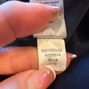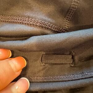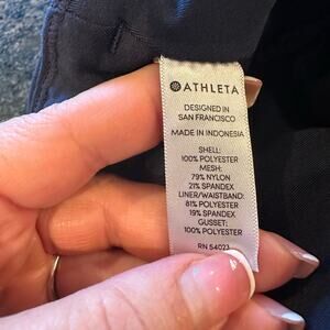 This Athleta skort in navy blue is perfect for outdoor and athletic activities. Made of a stretchy polyester-spandex blend, it features a solid pattern, pull-on closure, and mesh leg grips. The skort has a zip pocket and drawstring for convenience, and is machine washable for easy care.