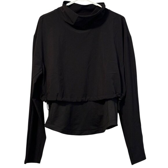 Athleta Layered Shirt Scrunch Bottom Size Medium Black Polyester Blend Preppy