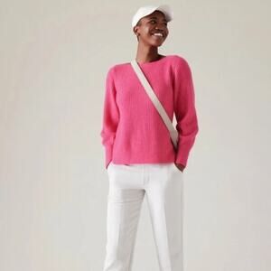 Athleta Layover Merino Wool Pullover Sweater in Tulip Pink