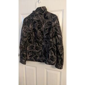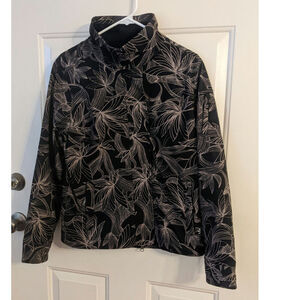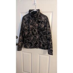 Excellent condition athleisure jacket, black and brown leaf pattern, medium, side pockets 99