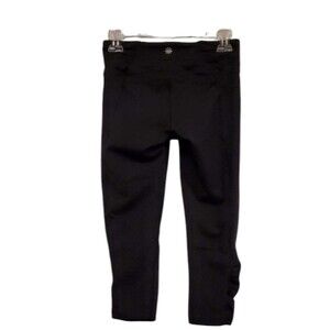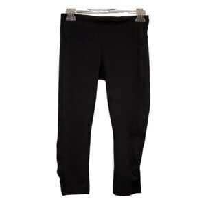 Athleta Leggings Balance Style Crop Capri Solid Black Knit Ruched Hem and Waist L