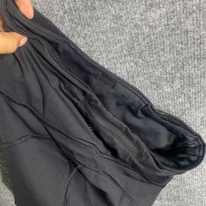 Features: black leggings, high rise, stretch, mesh at the leg hems, cropped capri length, back zipper, side pockets