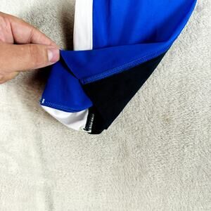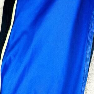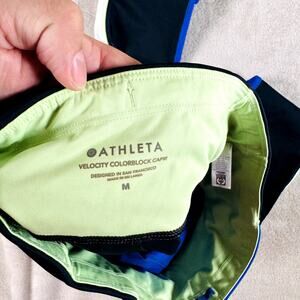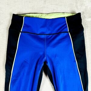 For sale is a: Athleta Leggings Womens Medium Blue Black Velocity Colorblock Capri Running Gym
