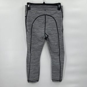 Athleta Leggings Womens Small Black White Striped Capri Stretch Yoga Workout