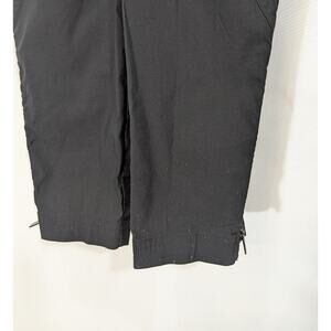 Athleta Lenox jumpsuit in black. Long sleeve zip front with utility pockets and ankle zips. Lightweight woven stretch fabric. Adjustable waist with back snap tabs. Size 0. Overall excellent condition with very small faint dots at the bottom hem as shown.