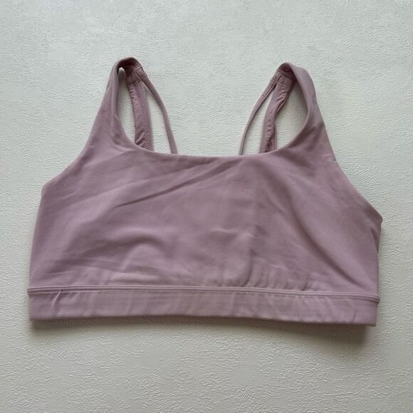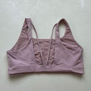 Athleta sports bra in a soft mauve-pink color. Designed with a smooth, breathable fabric and light-to-medium support — perfect for yoga, pilates, or lounging. Flattering scoop neckline with slim straps and removable pads (if included). Size M. Excellent pre-owned condition.