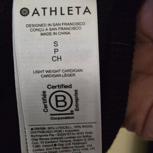 Athleta Light Weight Cardigan Sweater Black V Neck Wool Blend Size S