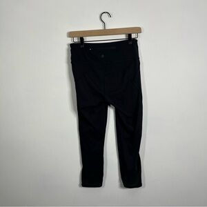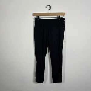 Excellent preowned condition womens size small. Black high rise cropped leggings. Mesh panels on calves. Back zipper pocket.