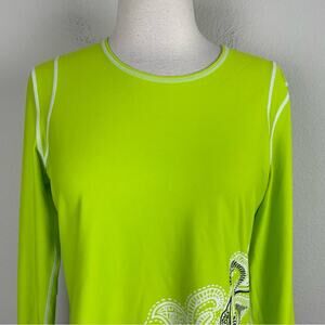 Athleta Lime Black White Print Long Sleeve Rashguard Medium