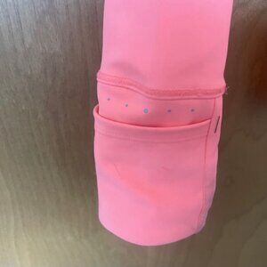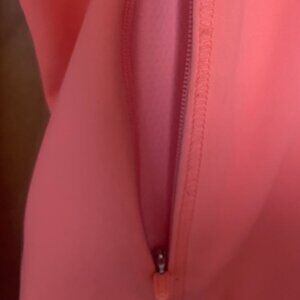 Coral orange, lined 1/4 zip. 2 Pockets. Reflective details. Very warm, great for running or hiking in cooler weather. Vibrant color for darker mornings and nights.