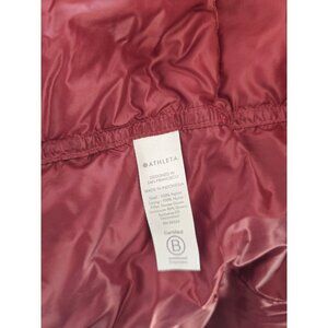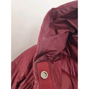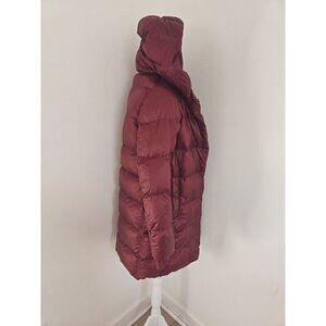 Athleta Lofty Goose Down Hooded Maple Burgundy Red Puffer Coat Zip Snap XS