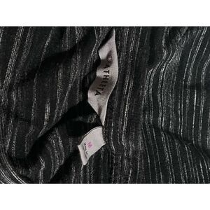 Made of 88% polyester, 7% rayon, and 5% spandex. Machine washable. Heavier knit with a lot of stretch. Laying flat measures 25" from pit to pit, 17" in the waist, and 41" from shoulder to the hem.
