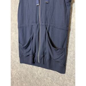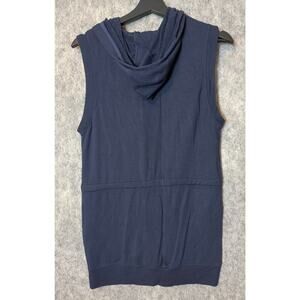 Athleta Lotus Vest XS Sleeveless Drawstring Hoodie French Terry Blue