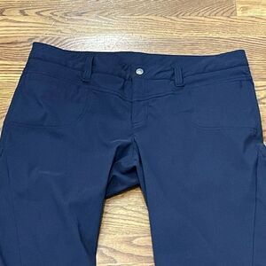 Very nice Athleta Lucy Capri Pants. Navy Blue. Size Medium. No known stains or damage. From smoke free pet free home. Measurements laying flat: