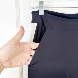 Athleta Luxe Gramercy Track Trouser Black Snap Button Legs White Stripe Size 8 {Eight}. Very good, preowned condition. Black with white side stripe. 2 zippered back pockets. 2 front pockets. has small zipper at the top. 4 button snap closure on the bottom. Loose straight leg fit made from breathable material. Comfy, classic, track style pant look. Exposed side zipper closure. Featherweight stretch fabric: sleek and silky feel.