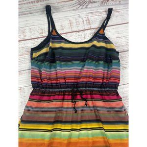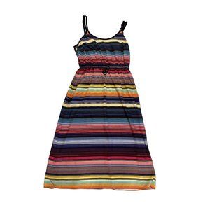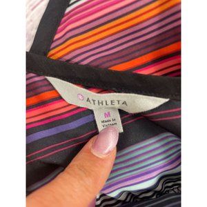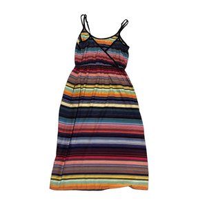 Athleta M Havana Bold Multi Color Striped Cross V-Back Midi Dress with Pockets