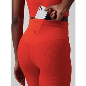 Athleta M flame orange Elation Crossover Rib 7/8 tights leggings pant work out