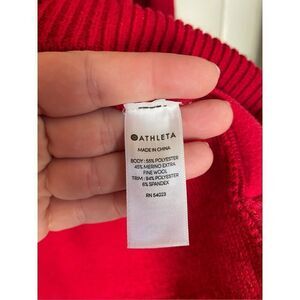 EUC Like New Athleta MESA HYBRID T- NECK in red size XS. Mesa hybrid turtleneck Marino wool sweater fits next to the skin. Polyester Marino wool blend keeps you cozy and dry. Woven panels on the side seam and under the arm provide stretch and mobility for the most active winter outdoor enthusiast. Perfect for a day on the slopes, outdoor Christmas shopping, or playing with the kiddos in the snow!